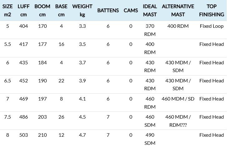 Dankzij een kortere giek en het innovatieve Dynamic Batten Concept is de handling merkbaar verbeterd ten opzichte van de originele Speedster. De kleinere maten (5.0 – 7.0) beschikken over 6 latten, terwijl de grotere maten (7.5 & 8.0) zijn uitgerust met 7 latten voor extra profielstabiliteit bij maximale snelheid.