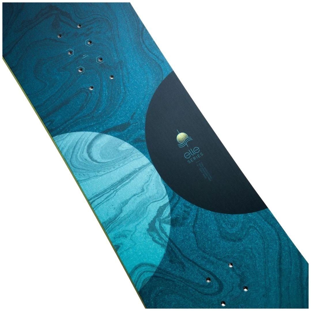 Met zijn Directional Twin shape voelt de Elle stabiel aan bij elke rit, terwijl je zowel vooruit als switch soepel kunt rijden. De neus is iets langer dan de tail, wat extra grip en controle geeft bij hogere snelheden en meer drijfvermogen in poedersneeuw.