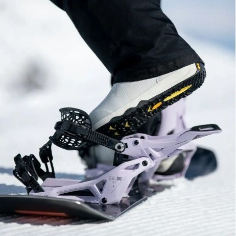 De Supermatic werkt met een getriggerde hiback die we Drop-In Tech noemen. Duw gewoon je voet door de achterkant naar binnen en trap het hielpedaal in om de binding automatisch te sluiten. Dat is alles - u bent klaar om te gaan boarden. Een eenvoudige ontgrendelingshendel maakt het uitstappen net zo snel. De straps hebben hetzelfde comfortabele AuxTech-ontwerp als in de traditionele high-end bindingen. Pas ze één keer aan en vergrendel ze vervolgens op hun plaats met behulp van de aluminium Locking Slap Ratchets om elke keer weer te genieten van een perfecte pasvorm. Het mooie van dit systeem is dat het werkt met elke laars van elke fabrikant, en er is geen onhandig mechanisme om verstopt te raken. Als de hellingen of sneeuwcondities het vereisen, kun je je zelfs vast ratelen, net als bij een gewone binding.