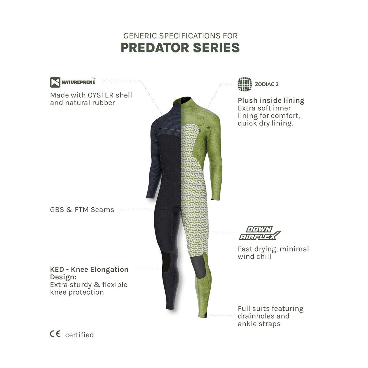 Het wetsuit is voorzien van double lined Down Airlex panelen, die zorgen voor een stevige maar flexibele pasvorm. Hierdoor sluit de wetsuit goed aan op het lichaam terwijl je volledige bewegingsvrijheid behoudt.